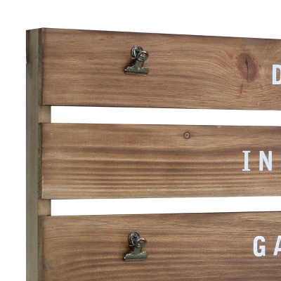Remember those special moments and enhance your home dĂ©cor with Stonebriar’s vintage wooden collage picture frame. Photos are easily loaded with 3 sturdy metal clips and can fit any 4” x 6” photo, piece of artwork, or document. Frame comes with attached sawtooth hangers and is easily installed with screws or wall hooks (not included). Wooden frame is made of distressed natural wood planks with inspirational words printed and rustic metal clips. Whether it’s for your living room, kitchen, bedroom, or office, Stonebriar’s decorative wood frame is the perfect decoration to enhance your home dĂ©cor.
