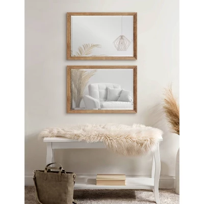 The stylish and rustic-inspired Hogan mirror gives your home an accent piece with a cozy quality. The Hogan wall mirror puts a modern twist on farmhouse decor pieces, featuring a minimal rectangular shape and a natural rustic brown finish. It is a simple way to add a vibrant accent piece to your wall that is low-maintenance yet visually striking. The Hogan’s frame has a beautiful and rich poplar wood construction, giving it a robust look and premium quality. The overall dimensions of this farmhouse mirror are 18 inches wide by 1 inch deep by 24 inches tall, making it a fantastic accent piece for various spaces. This mirror hangs vertically and horizontally with a versatile statement that creates a dazzling focal point wall display. Adding a visual focal point like the Hogan wall mirror to your home enhances the light in your space, making it feel more dimensional and overall more open. Hang this beautiful wall mirror in a matter of minutes with the D-ring hangers that are attached to the back of the frame.