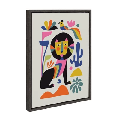 Show off your favorite animals in this vibrant, colorful lion art, created by artist Rachel Lee. This lion print is sure to add a much-needed splash of color and warmth to your white walls, and looks perfect in any living room, bedroom, bathroom, nursery, or entryway. Â Framed in a modern gray frame, this fun, contemporary design is the perfect art piece to add to your home decor collection. Printed and framed in the USA in Waunakee, Wisconsin, this framed floating canvas art will be a pleasure to look at every day in your living room, bedroom, nursery, or any room in the home. Printed on gallery wrapped canvas and framed with a lightweight polystyrene frame, this colorful wall art has two hangers already attached to the natural wood colored MDF back for easy wall display. The outer dimensions are 24 inches tall by 18 inches wide by 1.6 inches deep. Print Name: “Black Lion.” About the Artist: Rachel Lee found her passion for graphic design in Hong Kong. Her work is inspired by nature, wildlife, mid-century modern design, and folk art. She is a mother of 2 children and lives in Sydney, Australia. She enjoys creating art, traveling, hot chocolate, and dogs. Rachel draws a lot of her artistic inspiration from the nation of Australia, which holds an extra-special place in her heart.