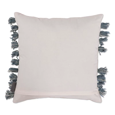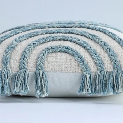 The textured details of the Pillow Perfect Throw Pillow in Abstract Circles Blue will instantly create depth and interest in your favorite living space. Featuring thick hand-braided embellishments in alternating shades of blue yarns, each half circle is completed with a lush tassel. The plush recycled polyester fill will maintain the pillow’s shape for years to come. Spot clean or hand wash only as needed.