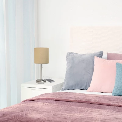19.5″ Bedside USB Port Feature Metal Table Desk Lamp Brushed Steel With Tan Fabric Shade – Creekwood Home