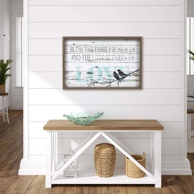 Decorate your home while saving valuable floor space with the Prinz at Home 23.5 X 15.5 Family Love hanging wall art. This rustic looking piece brings a sense of community and warmth to any room, or office it inhabits. With faded text displaying a sweet sentiment about family, this piece is sure to make a meaningful and heartfelt gift for anyone in your life.