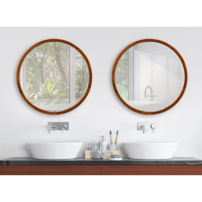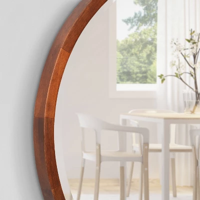- MID-CENTURY DESIGN: This mirror has a simple, round shape, in addition to a mid-century walnut finish on the frame
