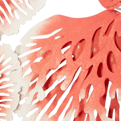 - This charming wall art features intricately carved metal flower sculptures with a gradient-style orange to white exterior design