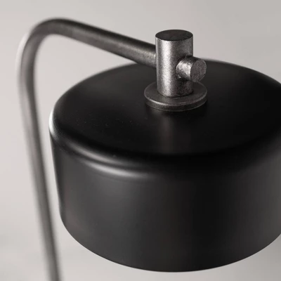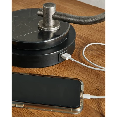 Love clean lines and sleek styling? This desk lamp is sure to find a place in your heart. Its architectural lines and black marble base are stunning in their simplicity. A downward-facing shade produces a nicely layered lighting effect. Rest assured, this lamp features a built-in USB port for convenient charging.