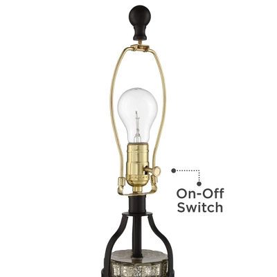 Light up your living space with this contemporary transitional table lamp from Franklin Iron Works. This lamp is made of metal in an oil-rubbed bronze finish, with a curving body of fluted mercury glass for a beautiful look. On top is a white drum shade for a classic finishing touch. Operate the light with the on-off switch located on the socket.