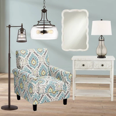- Contemporary glass table lamp from the Franklin Iron Works brand. A designer look for modern farmhouse or rustic luxe interiors., and perfect for a living room or bedroom lighting.