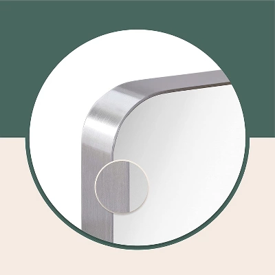Hamilton Hills offers a 24″ x 36″ floating glass modern round corner silver metal framed mirror. Reinforced D-ring hanging clips, wall hardware and screws are included for easy installation. Our family has been producing mirrors for over 3 generations, made to strict trade-secret standards and passing a rigorous 8 point inspection. Every mirror comes with our certification of authenticity. Add a modern touch to any room with our sophisticated and stylish Hamilton Hills mirror. Our glass is safely custom inlaid and protected by the surrounding frame construction. The mirror is recessed into the deep frame and floated from the frame edges. The mirror comes with reinforced D-ring hanging clips as well as the wall hardware and screws to hang.