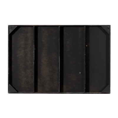 - Industrial wall decor showcases a distressed black and white wooden finish and a rusted iron metal finish
