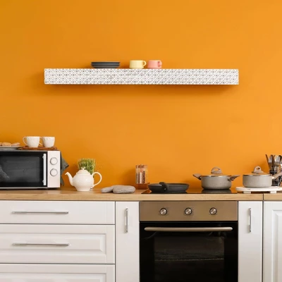 Add some unique, decorative, and functional storage solutions to your home with this floating wall shelf with beautiful florets embossed along the sides of the shelf, creating a detailed and intricate patterned design that will undoubtedly pop from your wall space. Made from wood and medium-density fiberboard (MDF) with a whitewash finish, this shelf is crafted with a charming, recognizable, and rustic look that embraces that rough-hewn yet elegant country style, serving as a wonderful storage system for your home decor needs. Plus, the detailed embossed floral embellishments add a decorative touch to the piece, giving it character and notoriety. With its rustic and vintage-inspired design, this shelf can be incorporated into a wide variety of decor styles and used in a wide variety of rooms. Whether you hang it in the entryway, hallway, bedroom, or bathroom, this piece marries function and form in an aesthetically pleasing way. Whether used as a shelf in your bathroom to hold daily toiletries, makeup, or perfume, or in your kitchen to house oil, spices, and vinegar, this shelf offers plenty of uses throughout the home. It’s perfect for storing books and displaying photos, plants, figurines, mementos, and keepsakes. Equipped with a mounting bracket that hides behind the shelf, this rustic shelf is the perfect project for the do-it-yourselfer in your life. With mounting hardware included (drywall anchors and screws), installation requires minimal effort with maximum return.