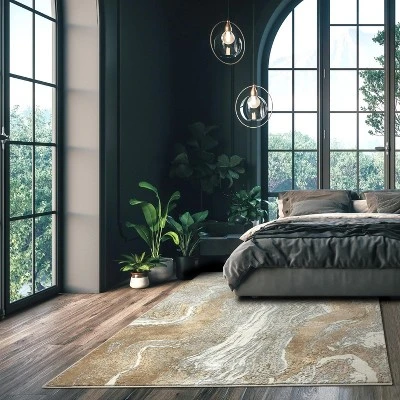 The Marble Abstract 9′ x 12′ Area Rug was designed to transform your home by adding the right splash of color and character. This modern rug features a blend of beige, gold, and gray hues as well as marble-inspired abstract patterns. Revamp your living room with the 8×10 rug or add comfort and coziness to your bedroom with a 6′ x 9′ rug size. This affordable 5×7 rug is made of high-quality synthetic fibers, and is a great choice for both low and high-traffic areas. It has a soft, plush texture that keeps your feet warm and cozy. Get this low-maintenance rug in blue with gold and gray accent colors to make a statement on your floors.