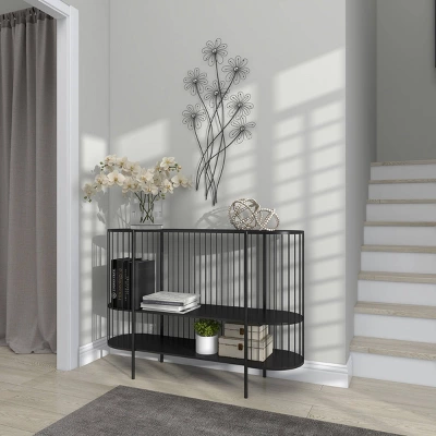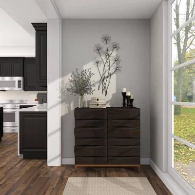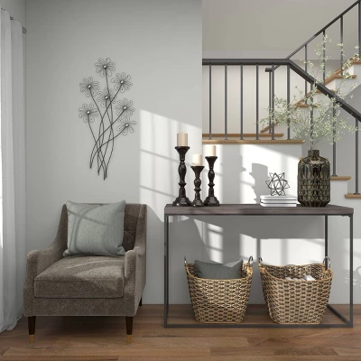 Make a charming and bold statement on your modern-themed walls with this large black flower decor to be displayed on your neutral-toned walls. This item ships in 1 carton. Can be hung vertically using the keyholes on the back; nails and screws not included. Suitable for indoor use only. This item ships fully assembled in one piece. This is a single black colored wall sculptures. Modern style.