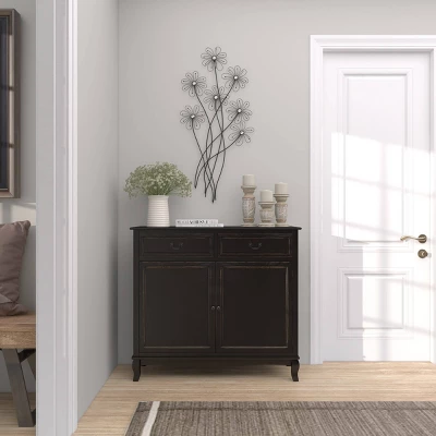 - Layered flower wall decor highlights a black wired frame, giving it a unique floating effect