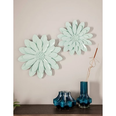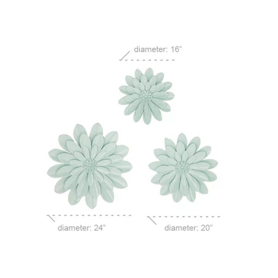 - •This metal wall decor set features 3 fully bloomed flowers in a pastel green finish in a 3D, and 3 layered traditional style inspired design