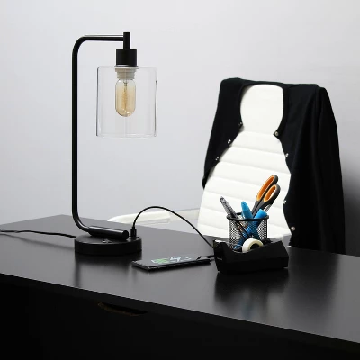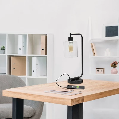Modern Iron Desk Lamp With USB Port And Glass Shade – Lalia Home