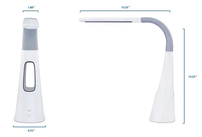 This lamp is ideal for office, computer workstation, reading room, dorm rooms or even in the bedroom as a nightstand light. The adjustable neck, as well as the adjustable brightness and fan speeds allow you to customize the performance of this lamp to your setting and the time of the day. With its bendable neck the tilt angle and the left and right rotation of the lamp head can be adjusted to to adapt to your needs. Its versatile and contemporary design will add style to your workspaces, bedrooms, and office settings. The touch activated controls provide a sleek design and make it that much easier to use. The color temperature is 5500 to 6500 Kelvin, which is equal to daylight color temperature that is easy on your eyes.