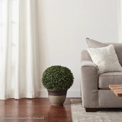 Introduce the lushness of nature to your decor with this Nature Spring Faux Boxwood Topiary Arrangement. Set in a weighted pot for added stability, the plastic construction provides maintenance-free, vibrant greenery. The spherical shape of this boxwood topiary adds structure and interest to any space and is durable enough to be displayed indoors or outdoors.