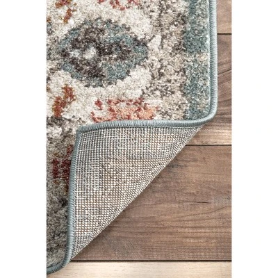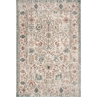 Add a refreshing transitional touch to your floor with this vintage floral area rug. The soft color palette is sure to blend beautifully with existing décor from traditional to bohemian. Machine-made in Turkey of soft synthetic materials this rug is built to last and comfortable underfoot. Kick back and relax with our easy to care for and pet-friendly area rugs.