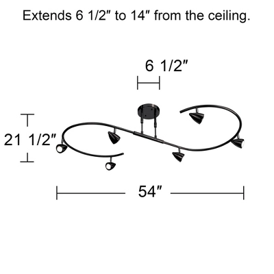 Pro Track Salazar S-Wave 6-Head LED Ceiling Track Light Fixture Kit Spot Light GU10 Adjustable Black Metal Modern Kitchen Bathroom Dining 54″ Wide