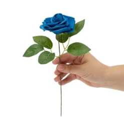 Bright Creations 60 Pack Artificial Blue Foam Roses, Faux Fake Flower Heads With Stems & Leaves For Decor & Craft, 136 Piece, 3 In
