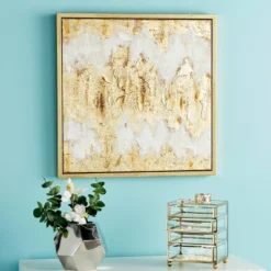 Glam Canvas Abstract Framed Wall Art With Gold Frame Beige – CosmoLiving By Cosmopolitan