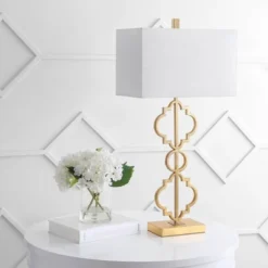 28.5″ Metal Sebastian Trellis Table Lamp (Includes LED Light Bulb) Gold – JONATHAN Y