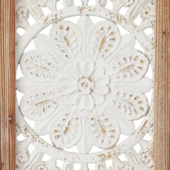 Set Of 3 Wood Floral Intricately Carved Wall Decors With Mandala Design White – Olivia & May