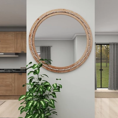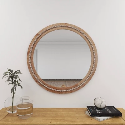 - •This decorative round mirror feature an extra large natural mirror design with a traditional wooden bead pattern